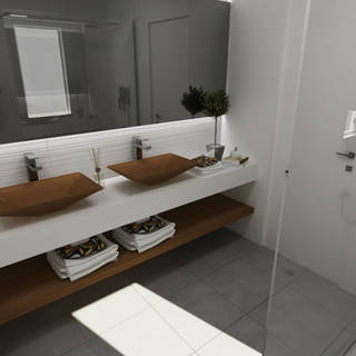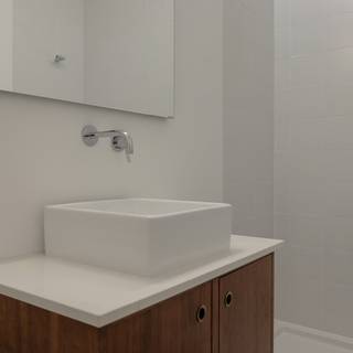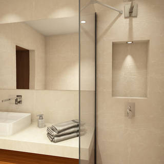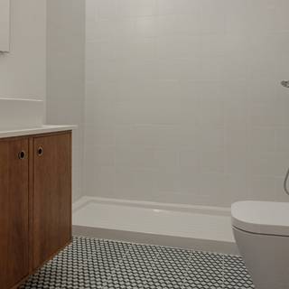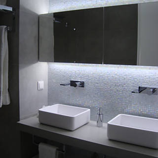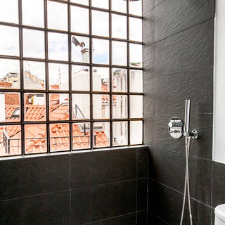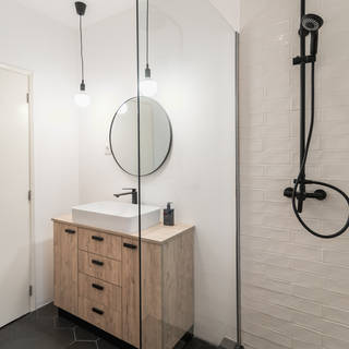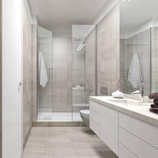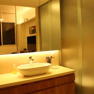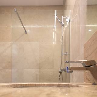 將浴缸以及淋浴區整合起來,是賦予小空間多元機能的最佳作法。要避免流水潑出浴缸外的區域的話,大多數的衛浴設計師會在浴缸的區塊設置一面小型的透明玻璃牆,藉此達到乾濕分離的效果,以防止潮濕的情形發生。