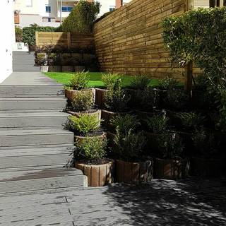露臺的空間是室內與戶外的緩衝區域,而你可以在這個地方愜意地用餐或喝茶,一邊欣賞你專屬的庭院造景。我們建議你在選擇露臺的材質前,要先考慮到你的庭院造景的風格與樣貌。如果你選擇以木頭作為露臺甲板的材質的話,你可以營造出有溫度,並且與自然呼應的戶外生活。除了木頭以外,石頭也是滿受到歡迎的露臺地板材質。石頭與木頭所呈現出來的風格截然不同,其氣質優雅高貴,並且讓人感到沁涼,也很容易維持整潔度。