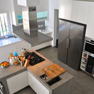 ㄇ字型廚房沿著三面牆設計ㄇ字型的廚具,因此所需的空間較大。如果說在ㄇ字型廚具的中間加上一個檯面的話,就會成為ㄇ字型的島型廚房。依照你選擇的材質與設備的不同,ㄇ字型廚房的費用約為 15-30 萬元不等。