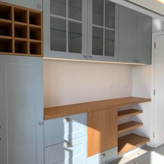 中島型廚房打破了傳統廚房的動線,讓廚房維持開放感。依照你使用上的需求,中島的檯面同時還可以當成吧檯桌或是流理檯面,島身則能夠兼具收納的功能,非常實用。依照你選擇的材質與設備的不同,中島型廚房的費用約為 18-35 萬元不等。
